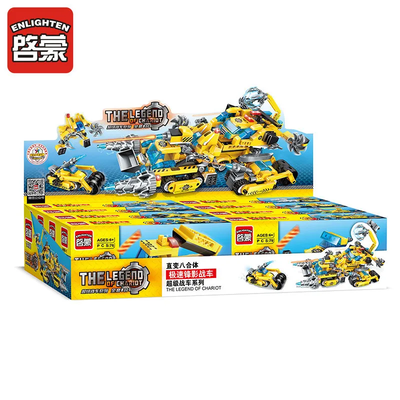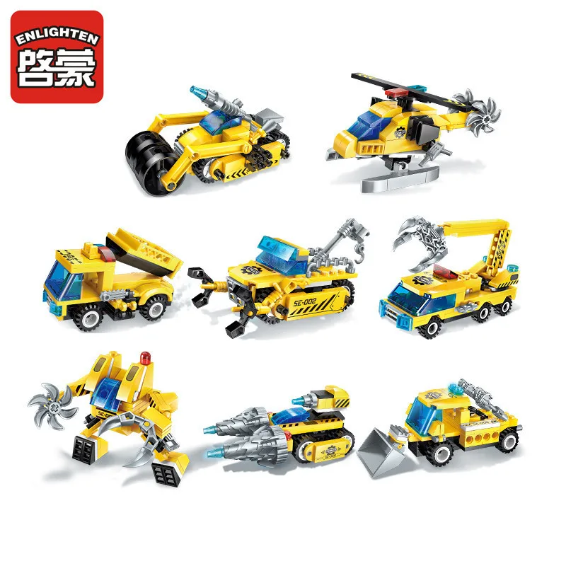 619pcs Kids Puzzle Enlighten 8In1 City Engineering Chariot Building Blocks Set DIY Bricks Toys for
